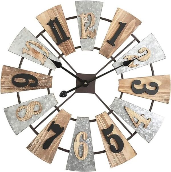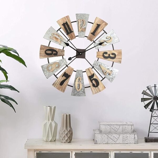 FARMHOUSE CHARM: Our 24 Inch Large Farmhouse Wall Clock adds the perfect touch of rustic charm to any room in your home with its vintage wood and metal windmill design.